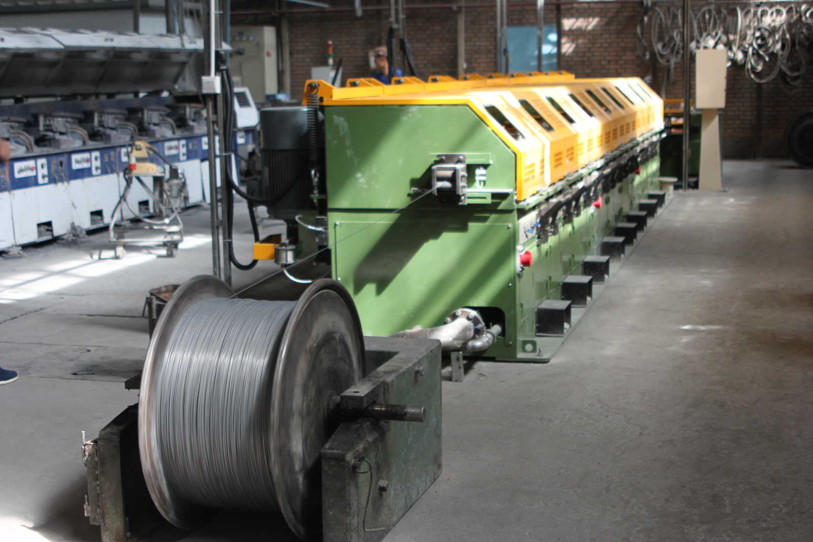 圖為該公司8350拔絲機正在生產圓珠筆頭用不銹鋼材料。
